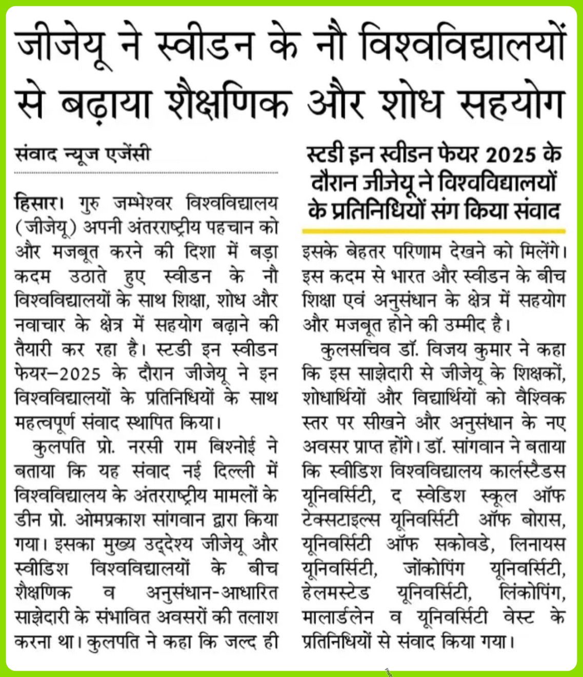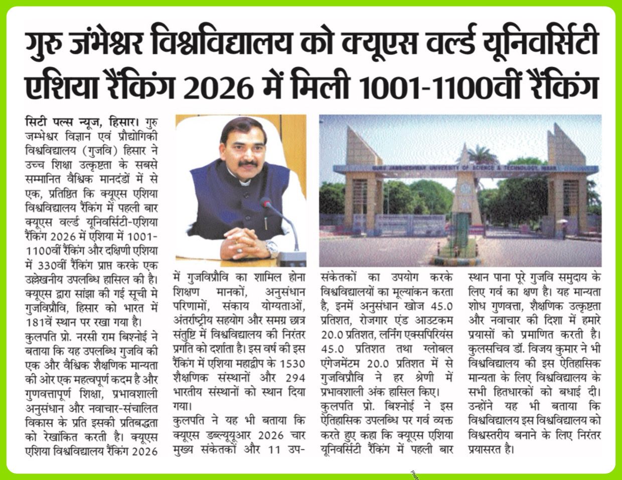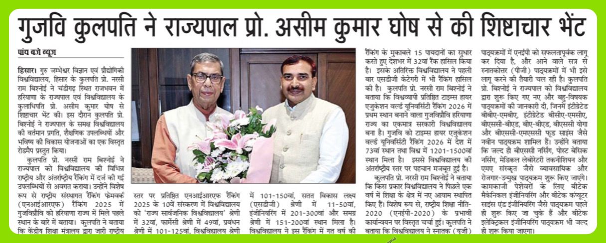 Chancellor, Guru Jambheshwar University of Science & Technology,