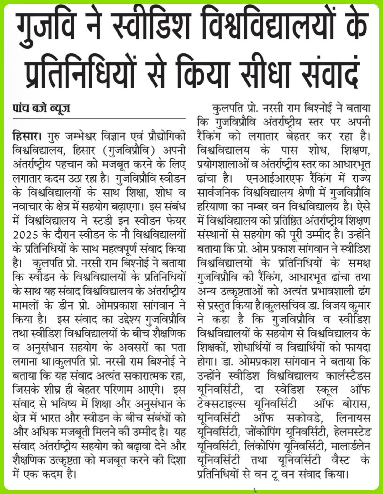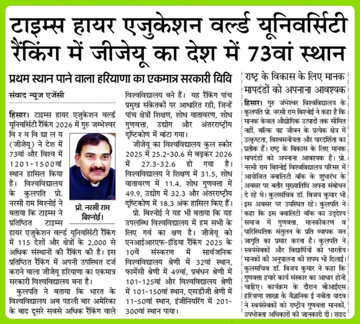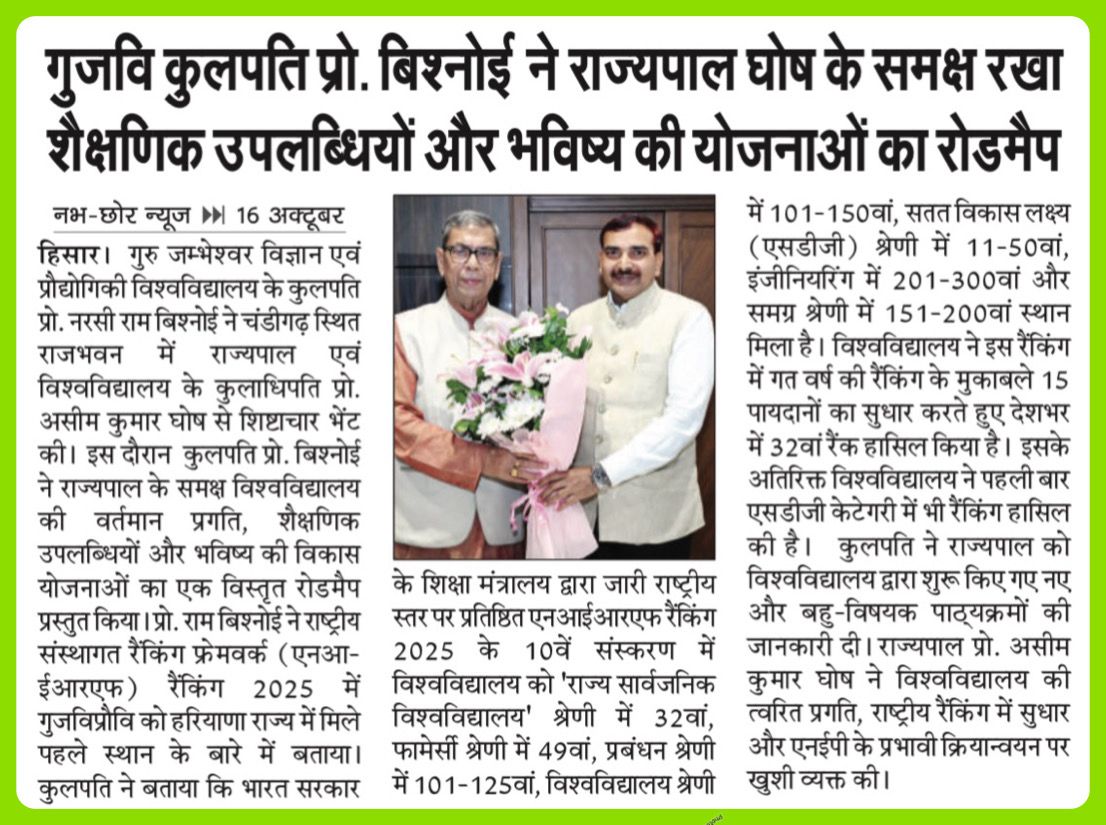 Chancellor, Guru Jambheshwar University of Science & Technology,